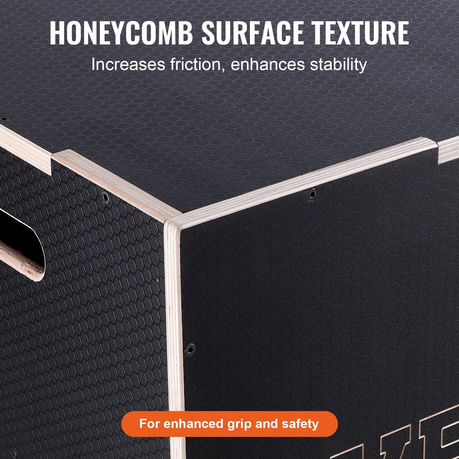 4.Safe and Reliable: The plyo box is designed with multiple sanding processes for smoothness, rounded edges to prevent hand injuries, and portable handles for easy movement. The surface features a honeycomb pattern for slip resistance, offering stability and grip to ensure safe and effective workouts.